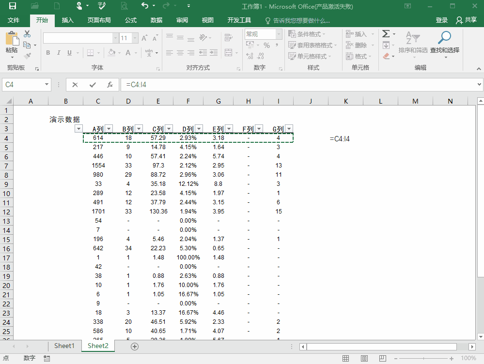 这里需要隔一行拔取,那在K4单位格,输入=C4:I4,按回车,再复制公式到下面需要拔取的处所,如图所示,再Ctrl+G调出定位前提 ,然后选择引用单位格。