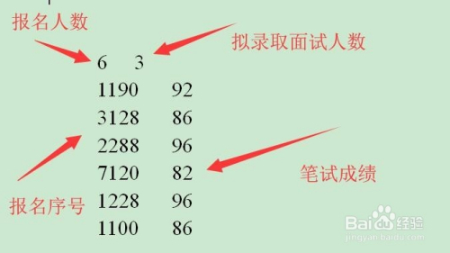 界说两个数组,保留报名自愿者的报名号和笔试成就。