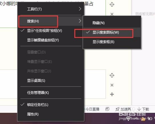 那么为了不影响大师利用微软小娜的功能,同时又避免使命栏空间被年夜量占用,那么我们可以在使命栏属性-搜刮设置中,点击勾选“显示搜刮图标”即可。