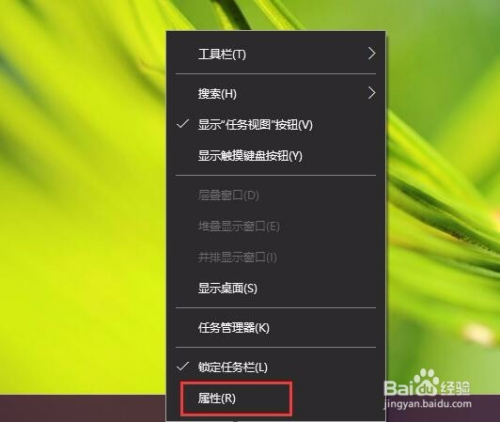 那么接下来,请按照我下面的步调来操作。仍是在桌面使命栏上击右键,在弹出的菜单中选择“属性”按钮,进入使命栏属性设置页面。