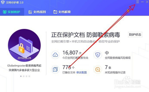 这时就会弹出一个“文档守护者”的窗口,点击窗口右上角的“设置”按钮。