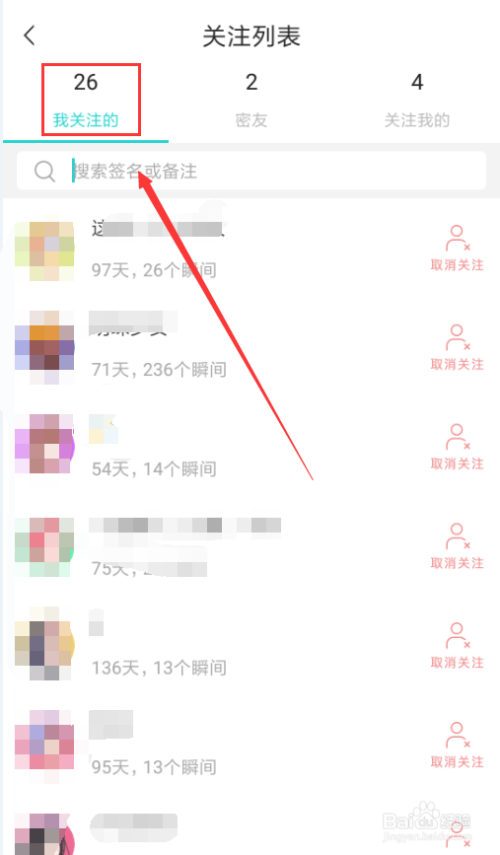 在“存眷我的”中心我们能看到“密友”列表中的两个老友。