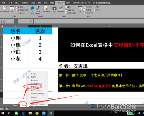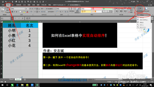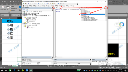 【Sheet2】→【查看代码】,在弹出的代码页选中【Sheet2(Sheet2)】