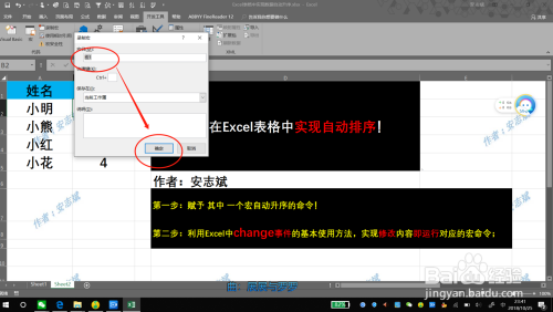 选中【开辟者东西】→【录制宏】→(记住宏名称,例:宏1)→【确定】