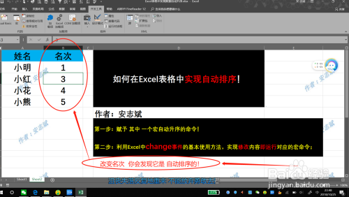 在你点窜名次后,你会发现名次是主动排序的!