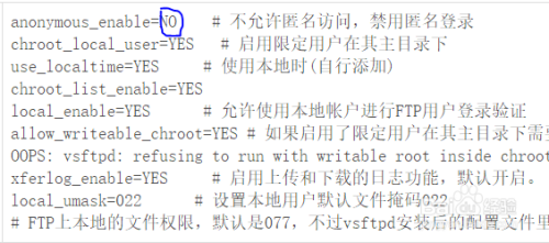 把:anonymous_enable=YES 改为: anonymous_enable=NO