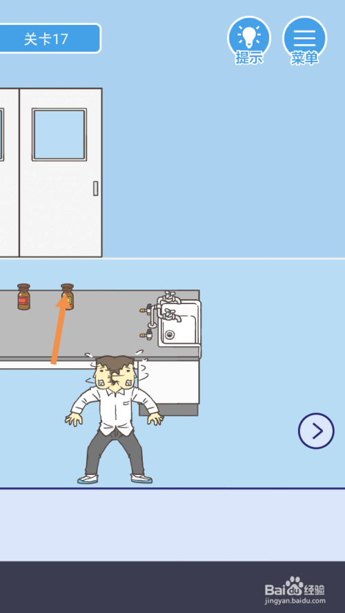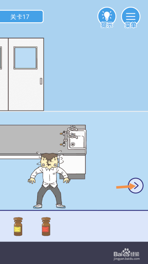 获得贴红色标签的瓶子后,点击标的目的右箭头到右边去。