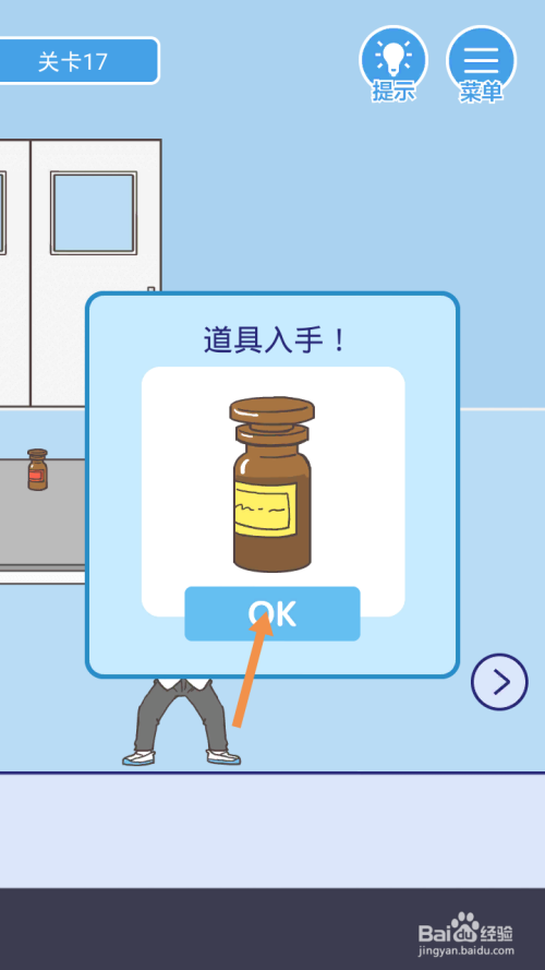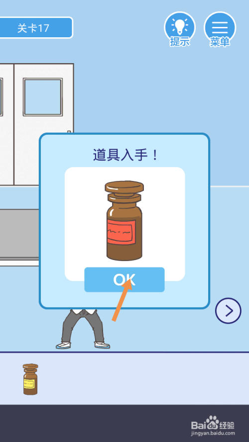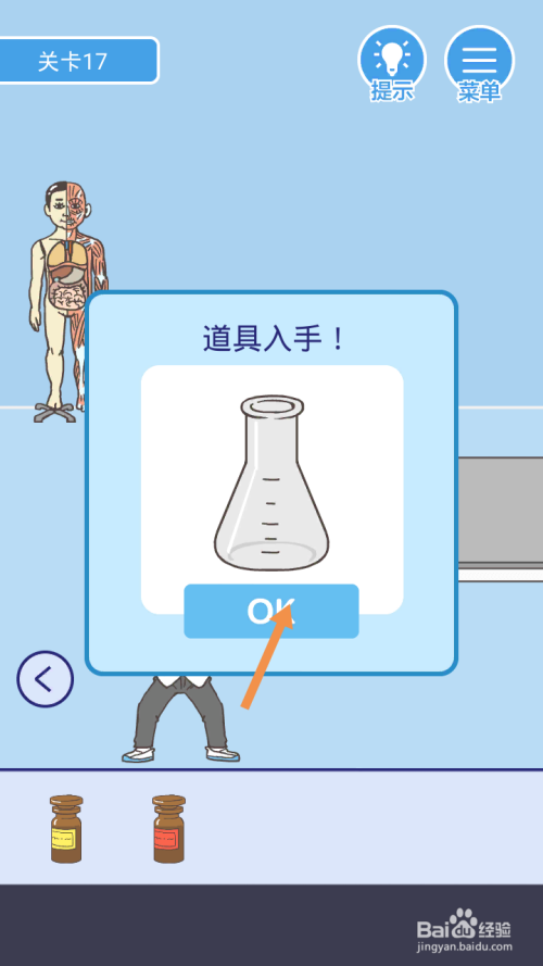 第17关点击贴黄色标签的瓶子,然后点击OK。