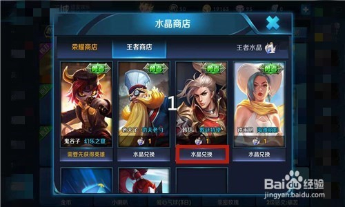 当幸运石完全点亮后,就可以获得一个王者水晶,点击王者水晶,就到了水晶商铺,看到韩信的皮肤,点击水晶兑换就可。