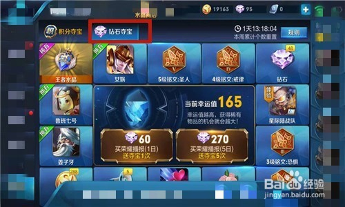 在夺宝页面可以看到有积分夺宝与钻石夺宝两个选项,要点钻石夺宝这个选项。