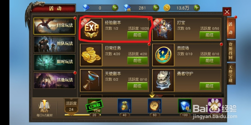 经验副本是游戏中活动弄法中的一个使命弄法。玩家在活动弄法的每日使命中就能直接看到经验副本!