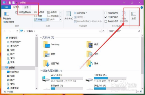 首先,请大师打开Win10系统中的计较机窗口本家儿页面,在本家儿页面中点击“查看”选项卡,然后点击页面中的“选项”按钮,打开Win10系统文件夹选项页面。