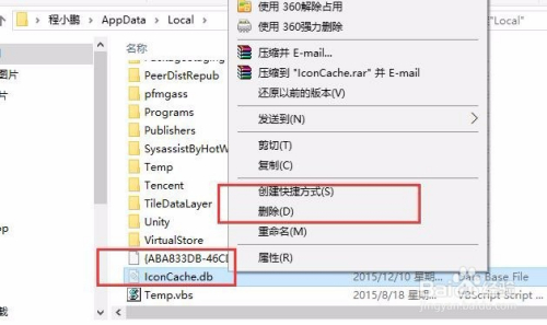 接下来,我们将打开Win10系统中的系统文件夹,在该文件夹中将页面拉到最底端,然后找到“Iconcache.db文件”,选中该文件击右键,点击“删除”按钮。
