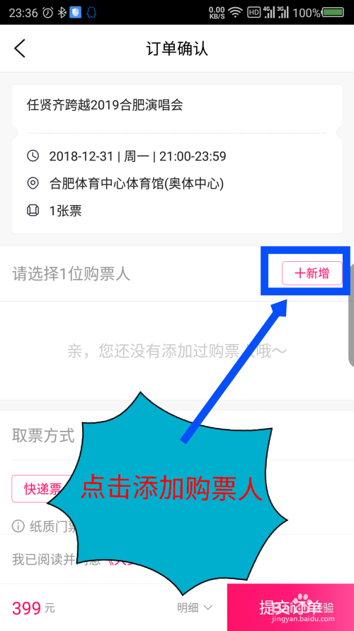 点击后打开一个订单确认窗口,选择购票人,可以点击新增,添加购票人。如图所示