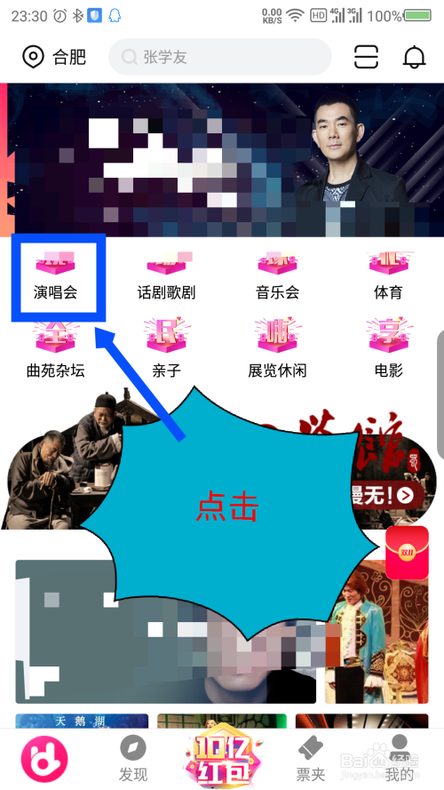 选择好要买票的城市后,在打开的界面,点击演唱会选项,查看演唱会信息。如图所示