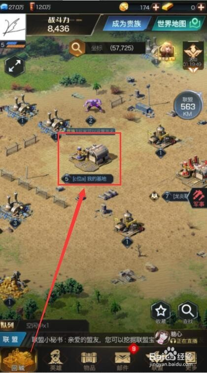 在城外找一个你想要转移你基地的位置。然后点击那处所,如图所示。