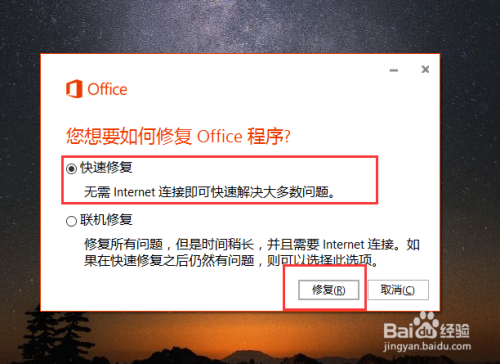 手动修复Office套装软件