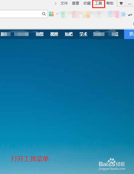 在浏览器的右上角会看到“文件”,“查看”,“保藏”,“东西”,“帮忙”几个选项,我们选择东西菜单