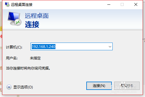 然后输入你需要毗连长途的输入ip地址,这里若是是内网就写内网地址