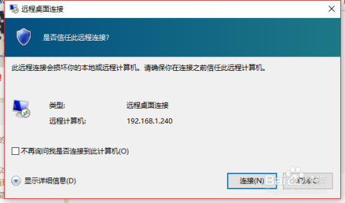 选择是否赞成长途桌面,首先需要确定是否准确填写了ip地址,点击毗连