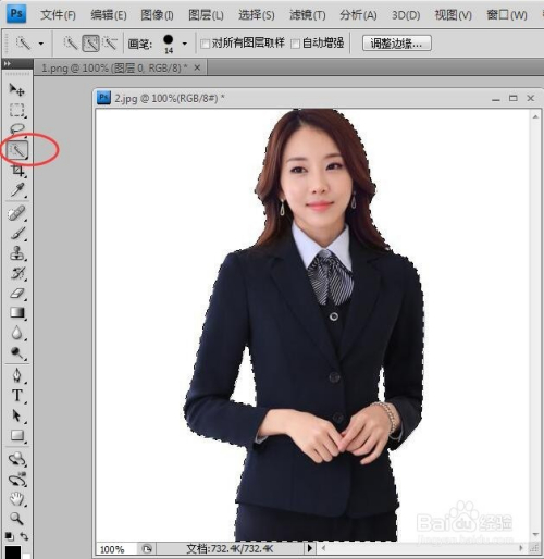 点击“快速选择东西”,拖选出人物身体的区域。如图所示。