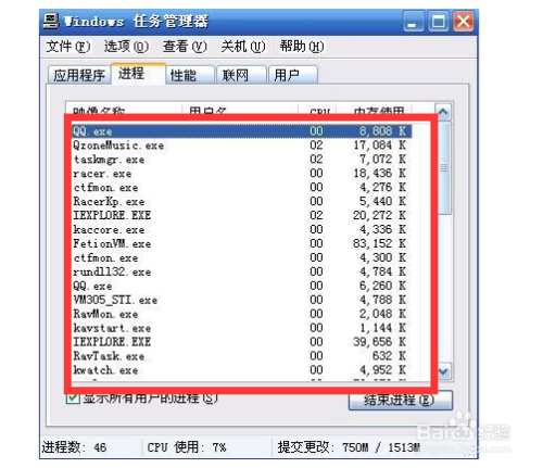 然后在历程中可以若是存在反复的历程名称或者是有些历程占内存很是年夜,可是本身却没有打开,申明这个就是病毒