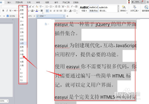 选中文字,设置文字大小:
