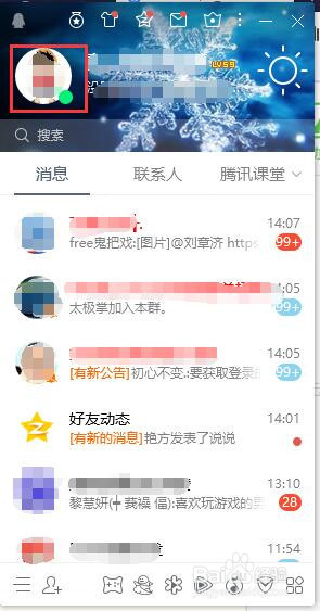 在QQ页面上,点击左上角上的头像:
