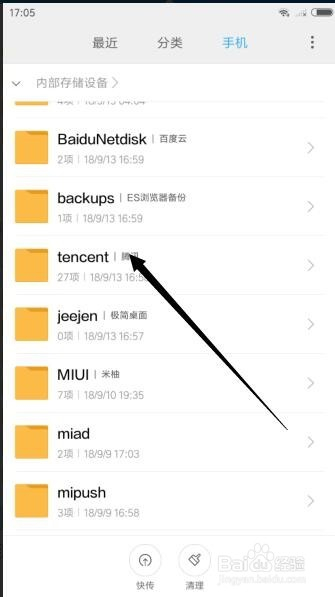 手机文件夹中下拉找到tencent文件夹。