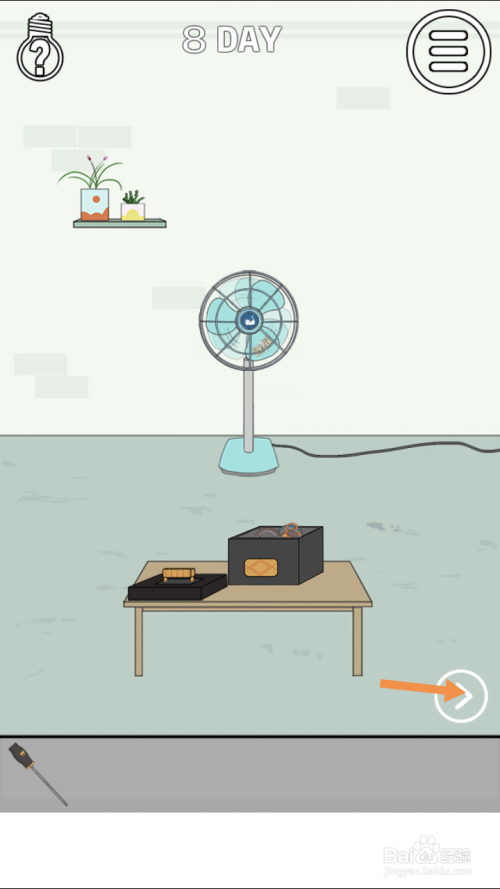 获得螺丝刀后,点击标的目的右箭头,进入右边的房间。