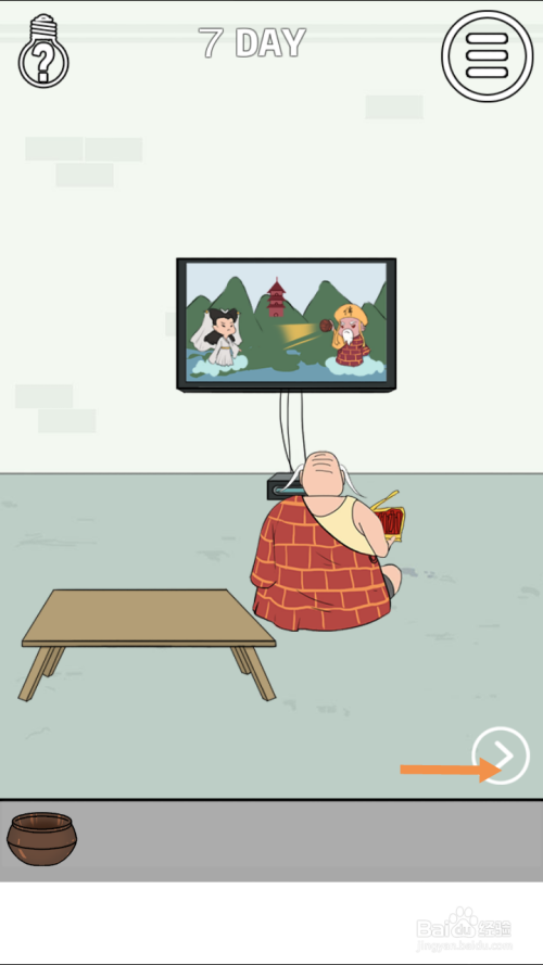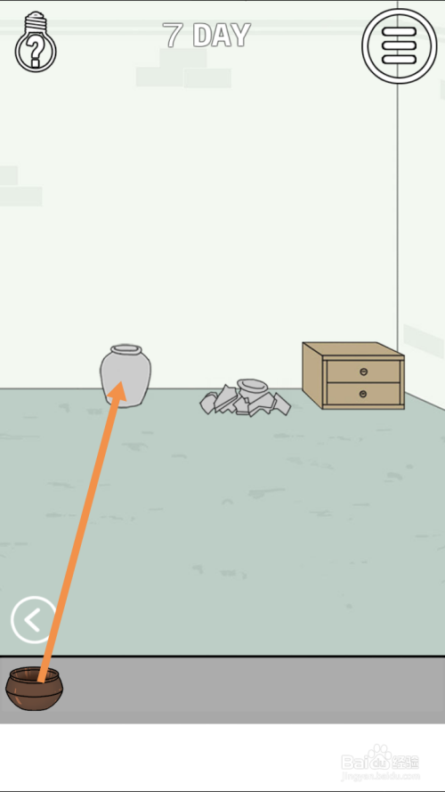 点击钵,然后点击OK。获得钵后,点击标的目的右箭头,进入右边的房间。