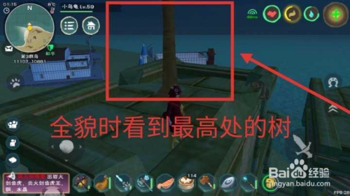 第三步,走到比来的远古遗迹,下图是远古遗迹全貌,我们要爬上那颗树最高点,如下图