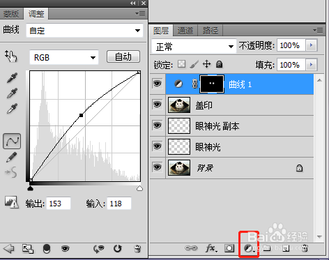获得两只眼睛的年夜致选区之后,添加一个曲线调整图层,提亮眼睛。