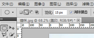 再次利用椭圆选框东西,这里将成仙值设为15px,按住Shift+Alt键在盖章图层的两只眼睛合适位置别离画正圆选区。