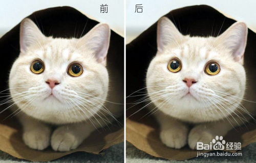 增添眼神光且提亮眼睛区域之后,图片如下所示,小猫看起来更有活力更可爱了。