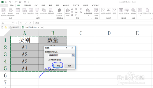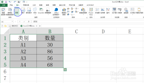 首先框选表格区域,然后单击菜单栏插入项表格功能区中的表格号令。