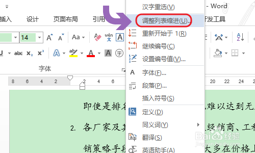 别的若是我们在序号之后不小心按下了空格键,导致文字内容和序号之间距离太年夜,想要批量点窜的话,可以将所有这些段落第中,然后点击鼠标右键“调整列表缩进”,将缩进之后更改为“不出格标注”即可,见图三...