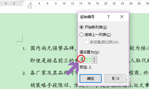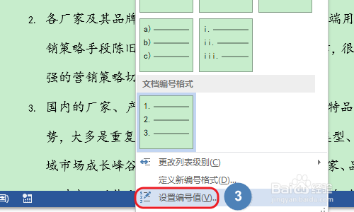 别的所有的文档序号都是以1起头的,若是我们想要从其他数字为开首,此时应该怎么操作呢?点击“起头”今后,找到今朝在利用的编号形式,然后鄙人拉菜单里勾选“设置编号值”,然后将值设置为我们需要的数字即可;