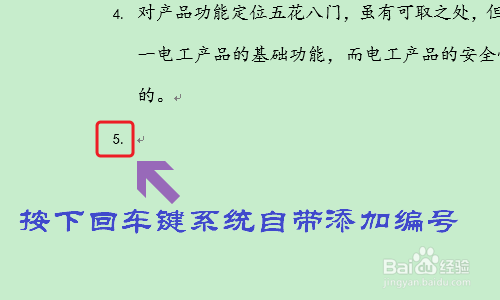 我们先来看看什么是所谓的主动编号,如下图一所示,我们按下回车键今后,下一行的开首就会主动显示编号了...