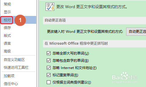 若是感受主动编号对本身没有效,那么完全可以打消它,如何打消呢?依次点击“文件”-“选项”,然后打开Word选项对话框,然后点击对话框左侧的“校对”选项;