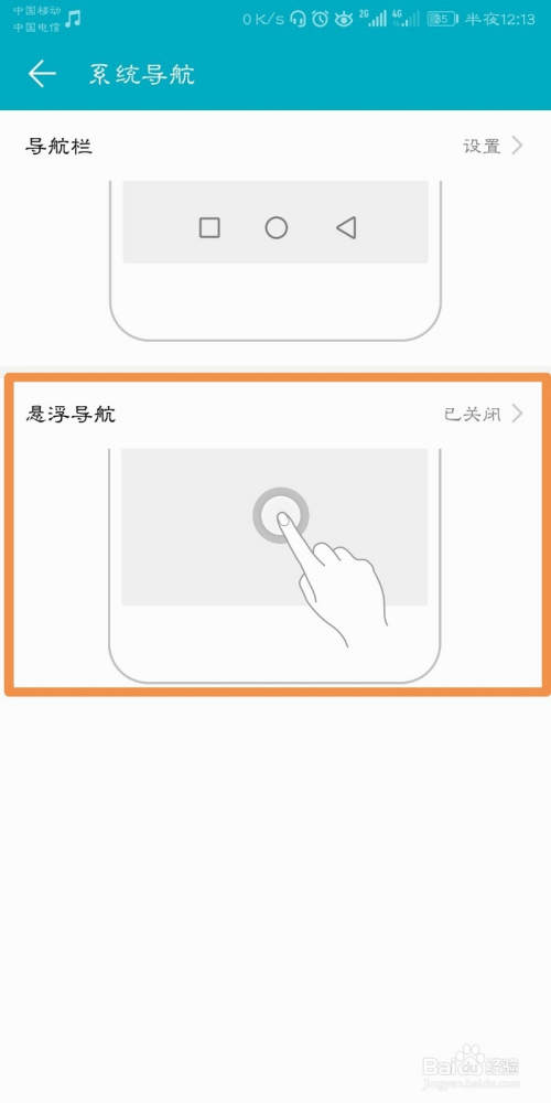 这是点击进去,点击鄙人面的”悬浮导航 ”,按钮变为深色即可