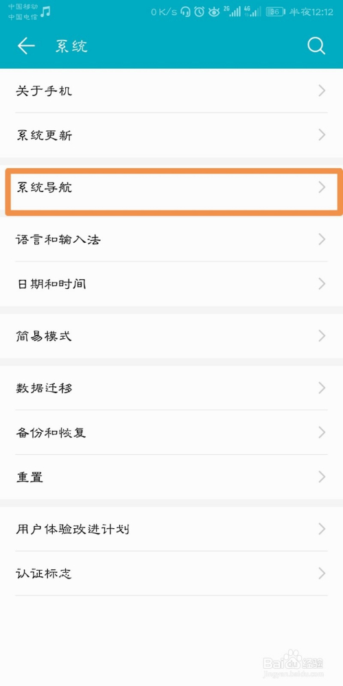点击“系统导航”,进去后就会看到有几个选项,点击第一个的“设置”