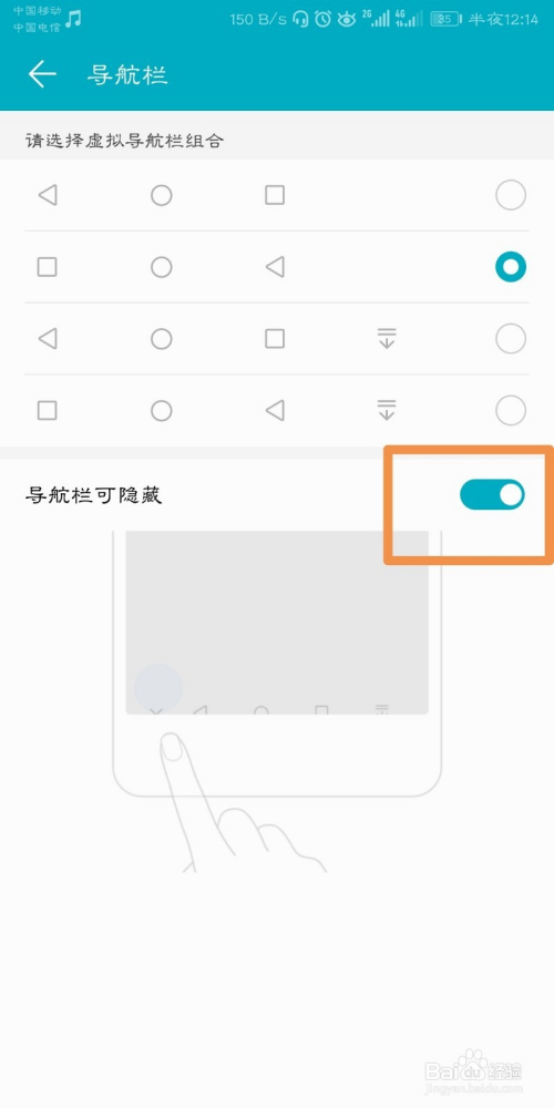 进入”设置”后,鄙人面会显示以一个“导航栏可埋没”,如许就设置完毕了,然后返回上一级菜单
