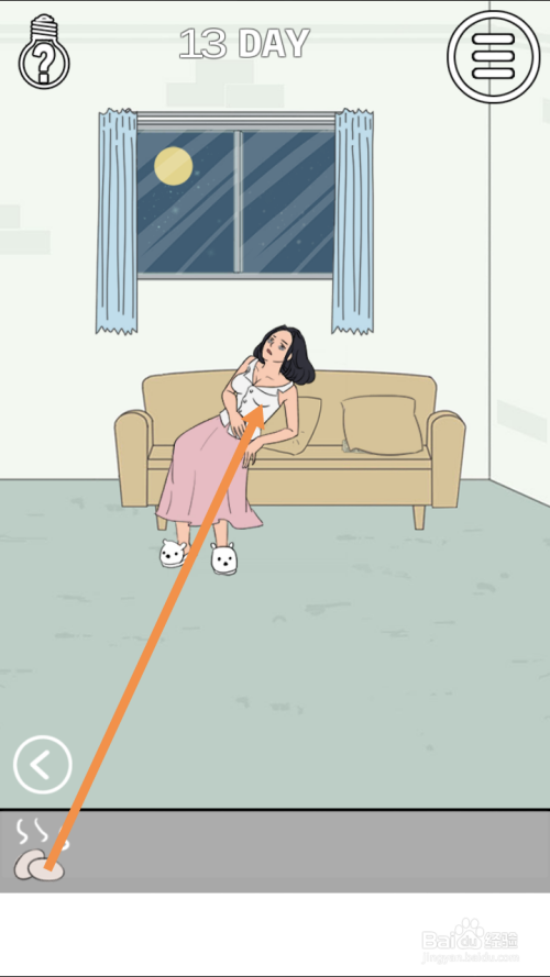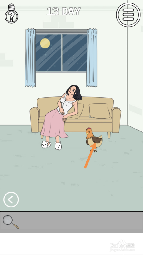 在右边房间里,将鸡蛋拖动到妻子身上,然后点击沙发靠垫点击钱就过关了。