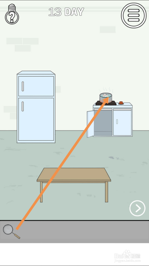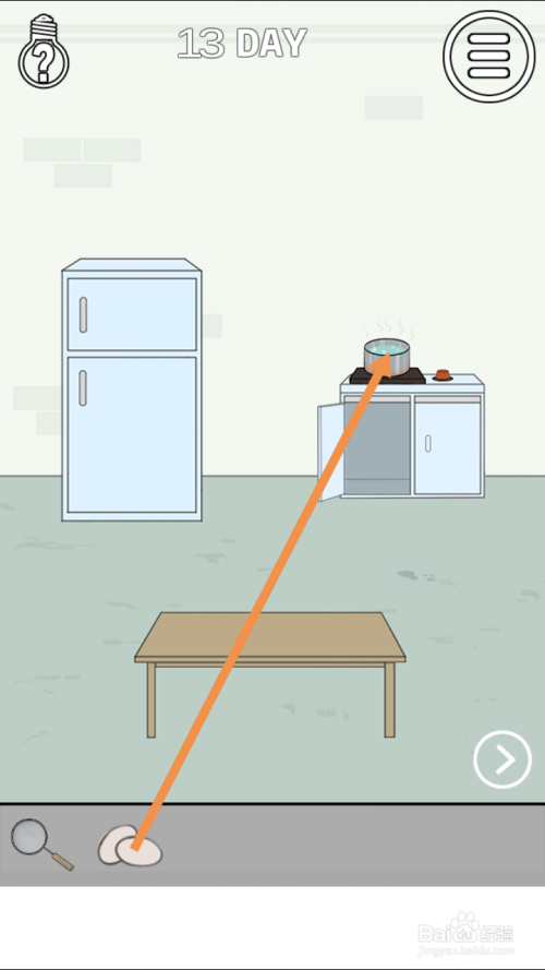 获得煮熟的鸡蛋后,点击标的目的右箭头,进入右边的房间。