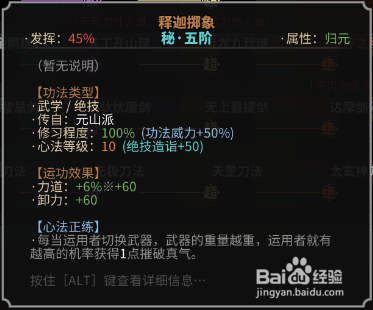 释迦掷象,这个特技同样和切换兵器有关,正练结果为,切换的语气越重越轻易获得一点催破真皮,逆练结果,切换的兵器越重越轻易获得一点护体真气