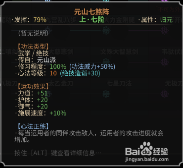 元山七煞阵,同样是被动特技,可是这个特技和同志有关,正练结果,同志的进犯可以或许增添脚色的进犯进度,逆练结果,削减仇敌的进犯进度。