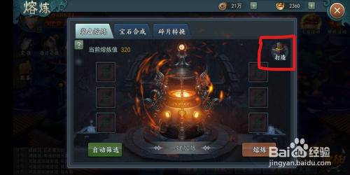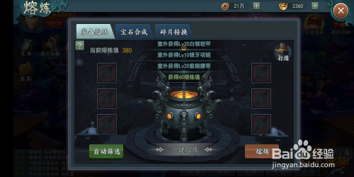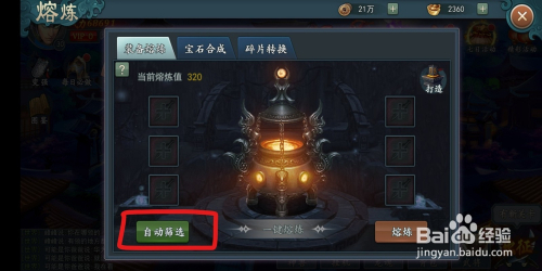 每次玩家在熔炼装备的时辰,直接点击左下方的主动筛选。系统就会主动添加装备来进行熔炼!