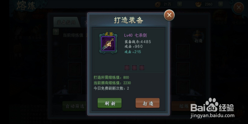 玩家在打造装备的时辰,若是对该装备不对劲。天天还有3次的免费机遇刷新呈现的装备!
