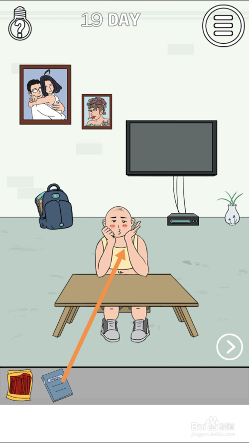 获得书后,将书拖动到胖子身上。